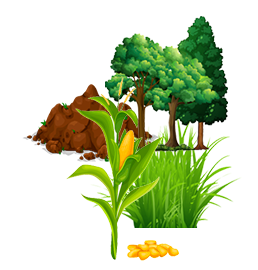 Seed breeding, compost, green spaces, grains & trees